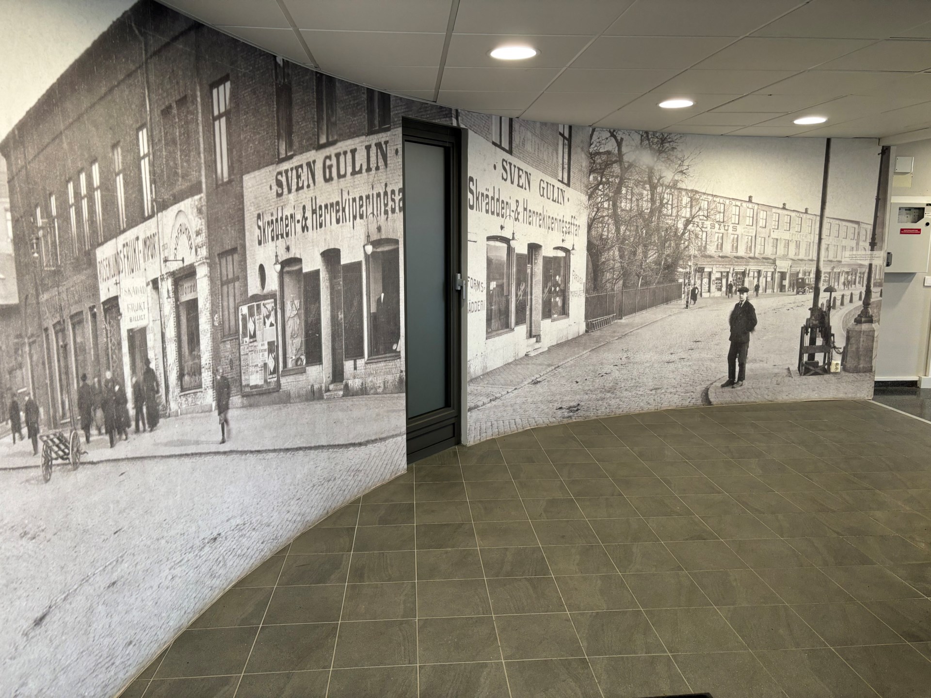 Här får du sitta i ett historiskt hus. Gulins herr-och damekipering skötte sitt lager och produktion i denna fastighet. Många säger att det är tack vare Gulins som kedjor som H&M har kunnat etablera sig på världskartan.