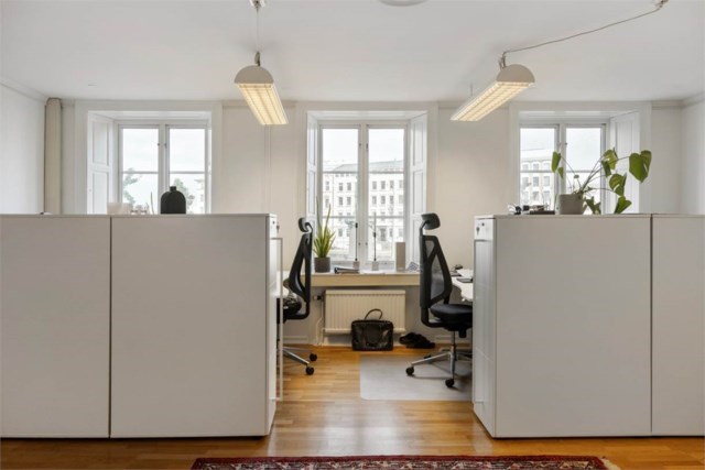 "Vackert kontor i klassisk miljö med utsikt mot kanalen och en fantastisk innergård. Kontoret har 2 stora rum som idag används som konferensrum samt 4 arbetsplatser med utsikt mot gatan och kanalen. vidare finns 2 kontorsrum i normalstorlek, pentry, matplats samt lounge."