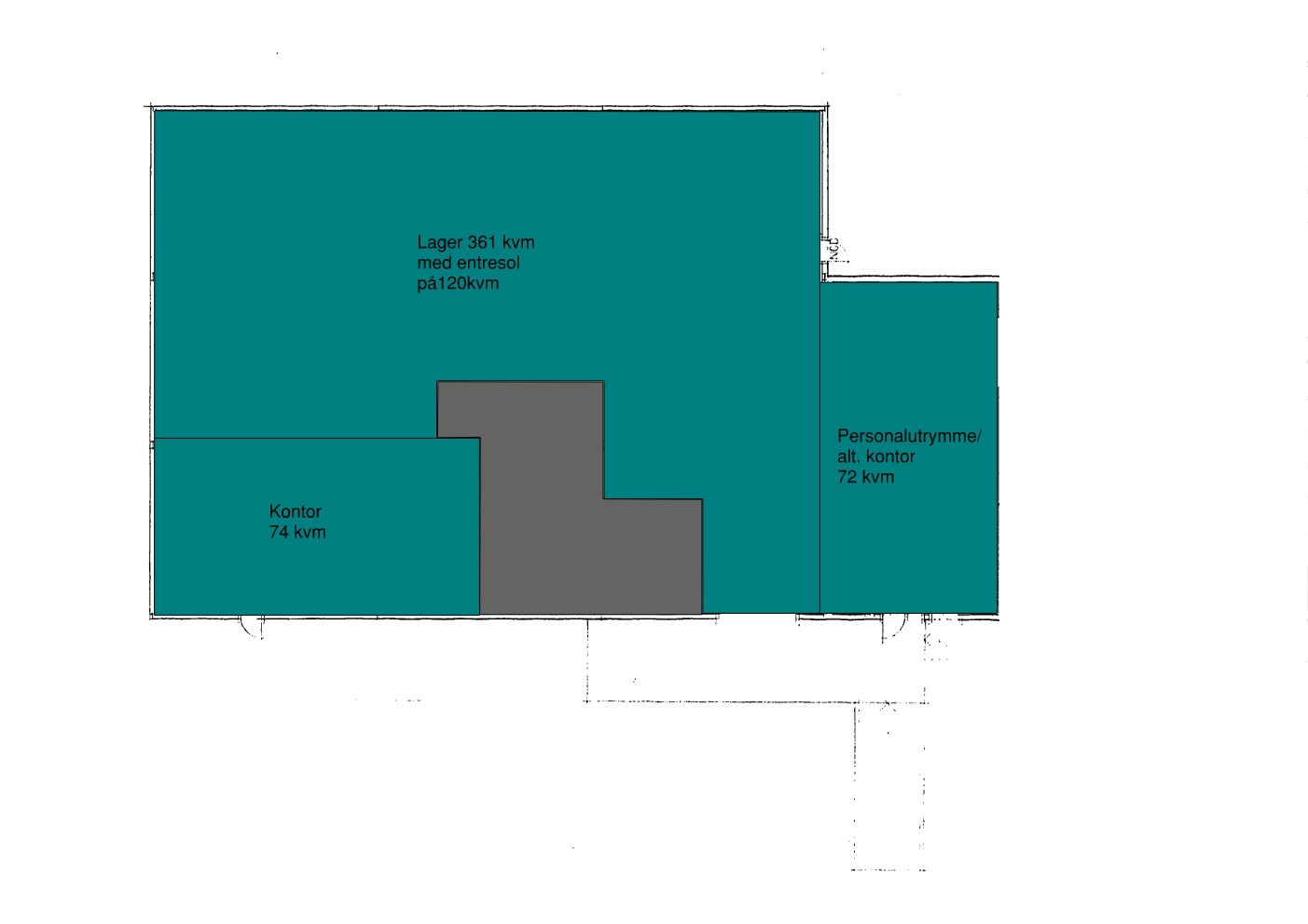 Industrifastighet – lager 361kvm, entresol 120kvm, två separata kontor/personalutrymmen 146kvm.