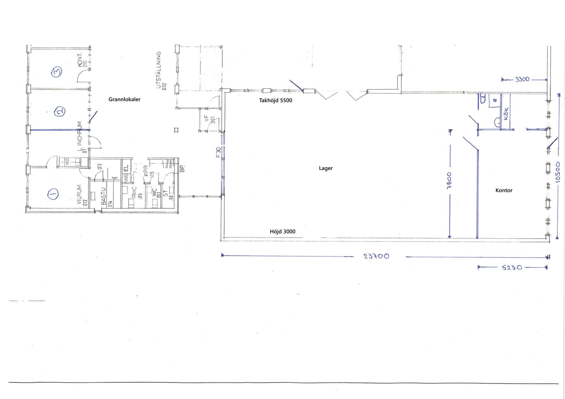 I lokalen finns även dusch och wc. Till lagret hör ett kontor med egen ingång med kök om ca 59 kvm.