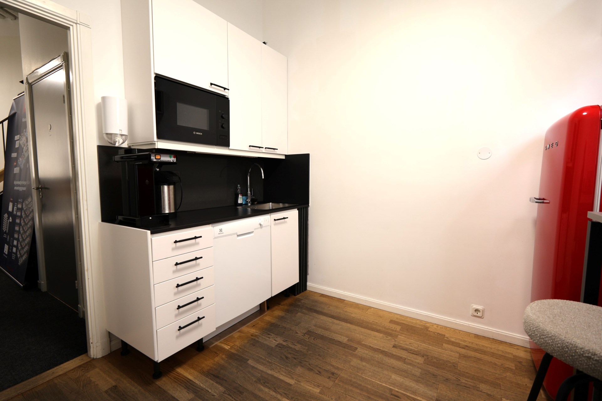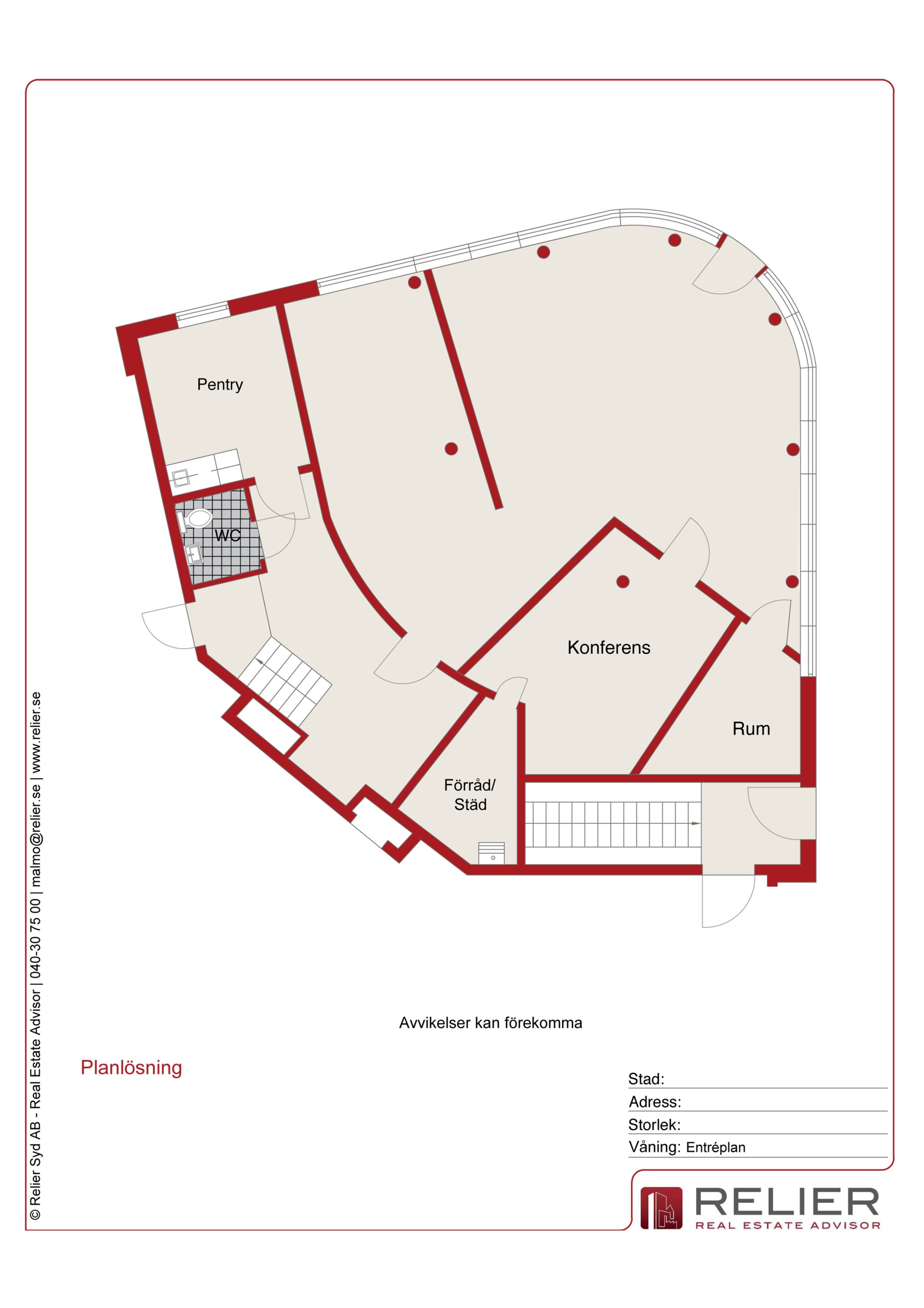 Planlösningen är flexibel och genomtänkt. Den stora öppna ytan lämpar sig lika väl för butik som för kontorslandskap eller showroom. Utöver detta finns ett separat konferensrum för möten och presentationer samt ett mindre samtalsrum – idealiskt för privata möten eller konsultationer. Praktiskt pentry och fräsch toalett finns självklart på plats.