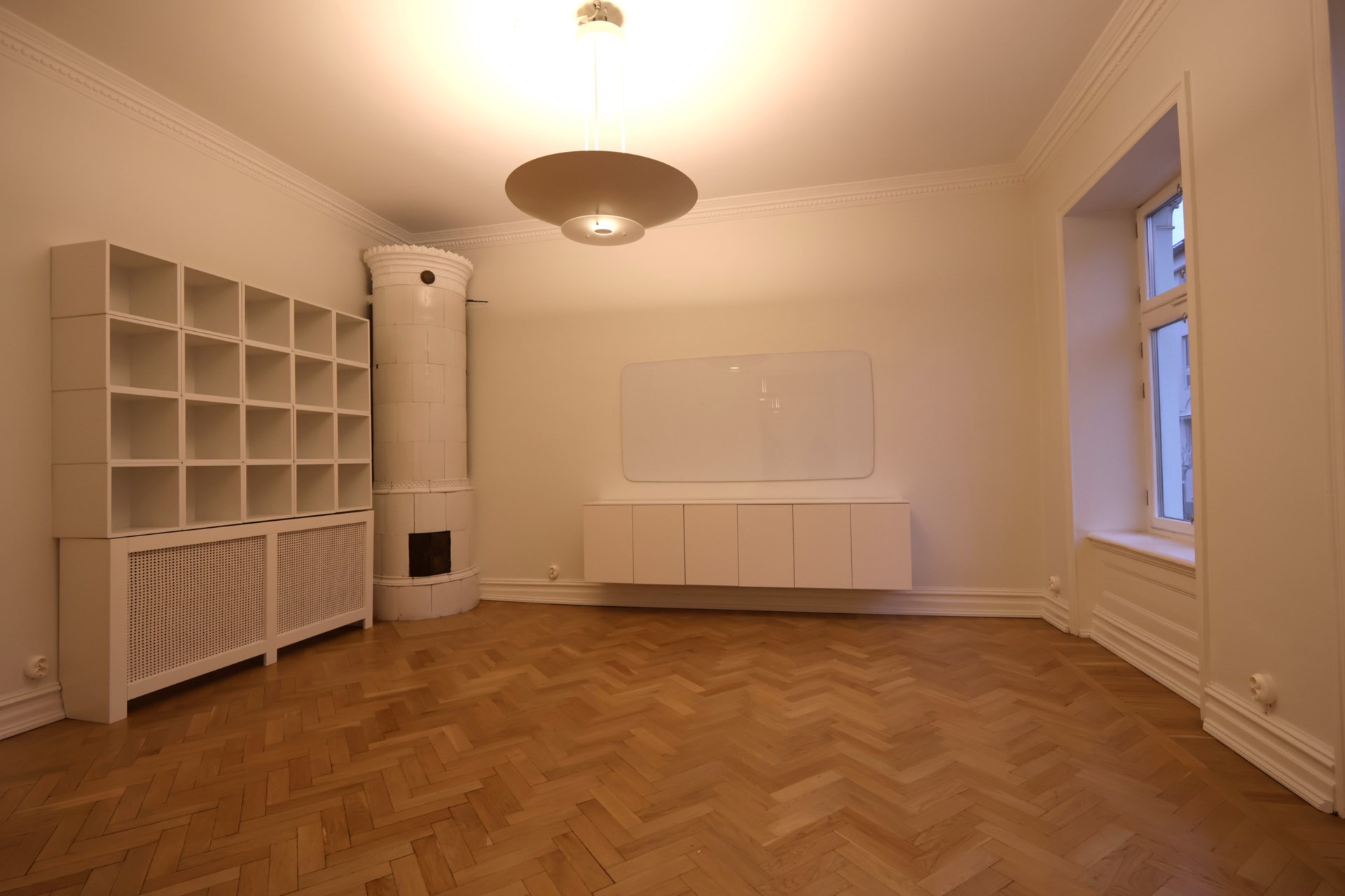 De stora, ljusa rummen badar i dagsljus från trevliga fönster och lämpar sig ypperligt för ett öppet kontorslandskap med plats för kreativitet och samarbete. Här finns även ett separat konferensrum som bekvämt rymmer 8–10 personer – perfekt för möten, workshops och kundpresentationer. En stämningsfull kakelugn sätter pricken över i och skapar en inspirerande miljö där både fokus och trivsel får ta plats.