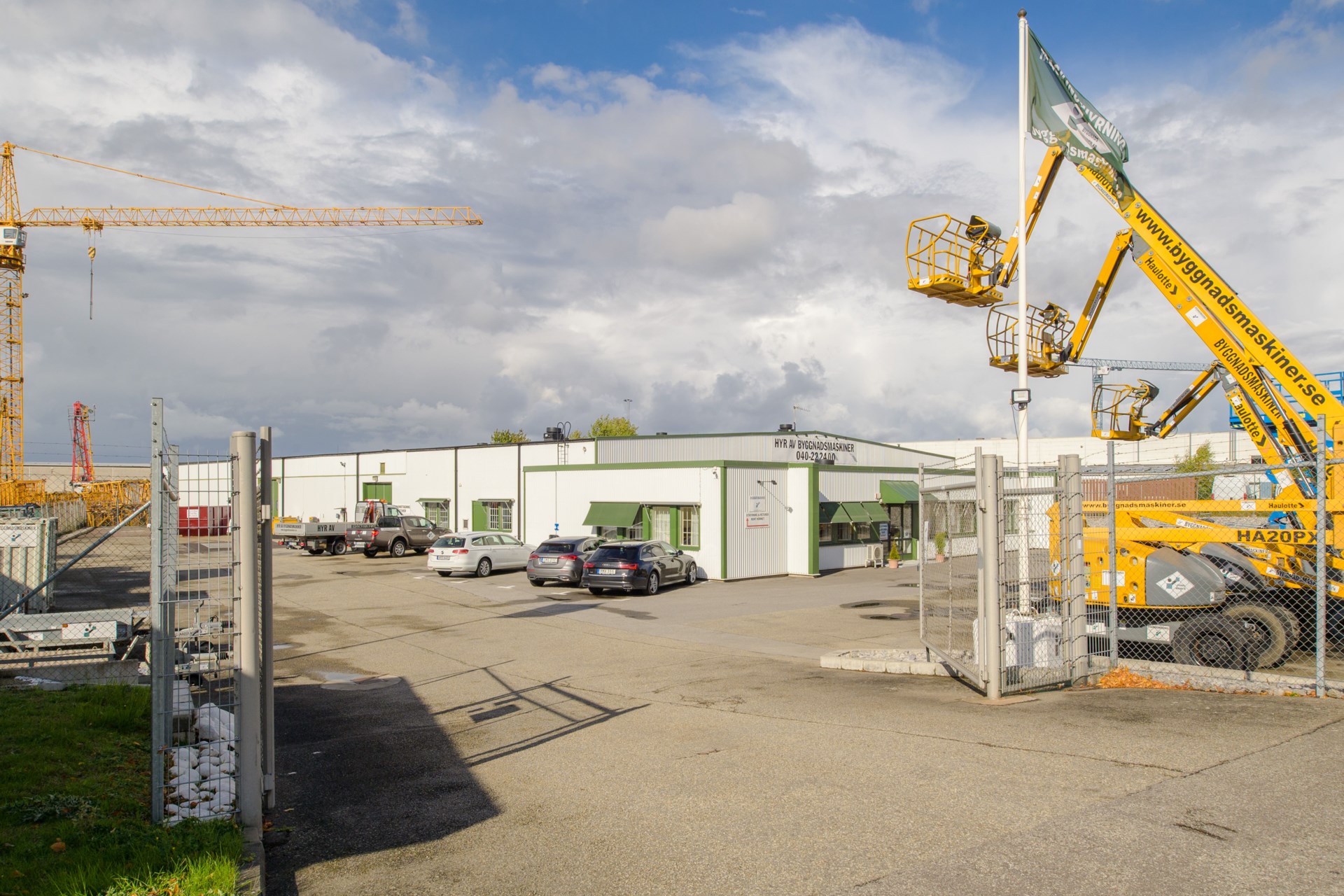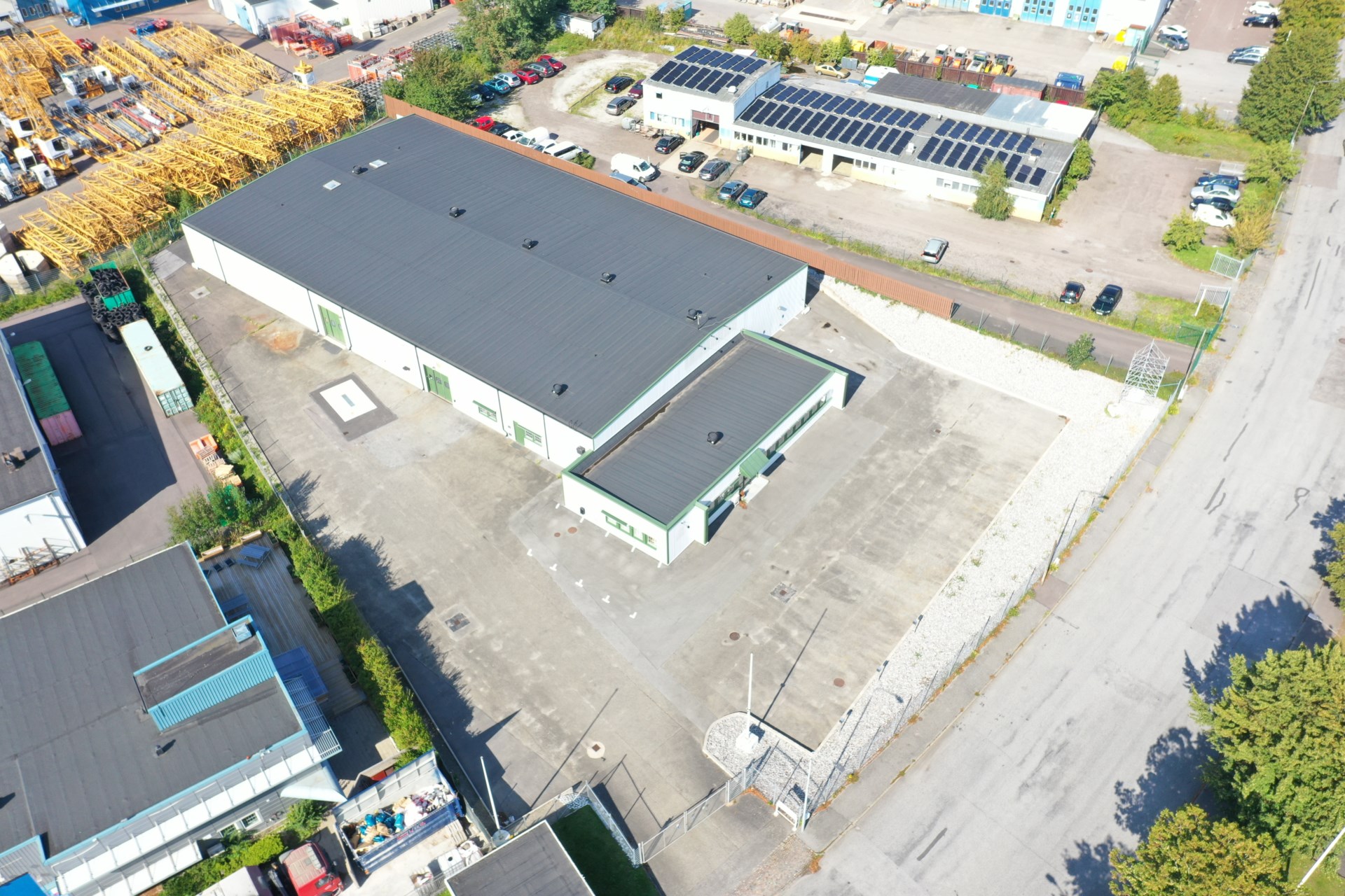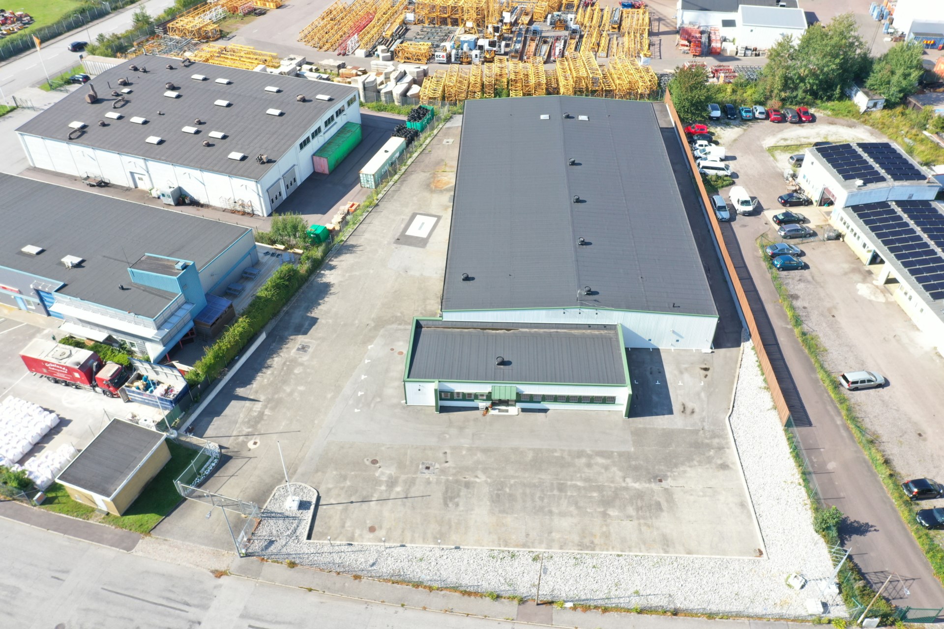 Fastigheten har en tomtyta om 4 695 kvm och är fullt inhägnad med industristängsel. Den asfalterade gårdsplanen erbjuder goda möjligheter till parkering, uppställning och markförvaring. På området finns även spolplatta samt installerad laddstation för två bilar.