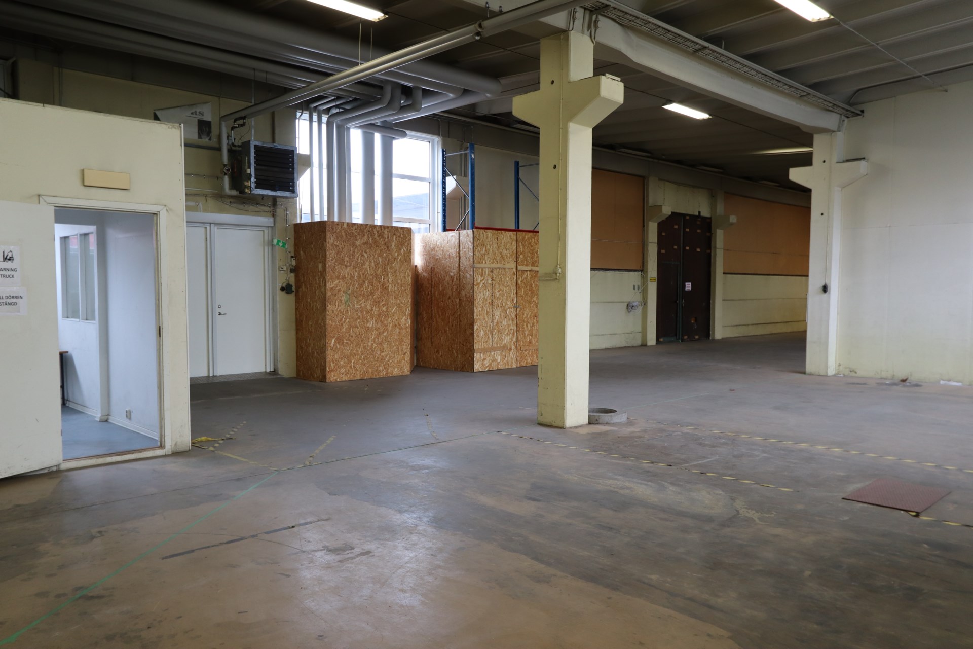 Lokalen erbjuder praktisk markport, kontorsdel och toalett, samt möjlighet att anpassa ytan efter din verksamhets behov – oavsett om det handlar om lager, lätt industri eller logistik.