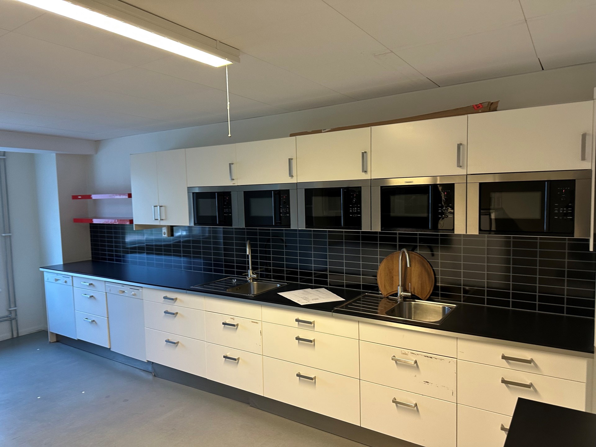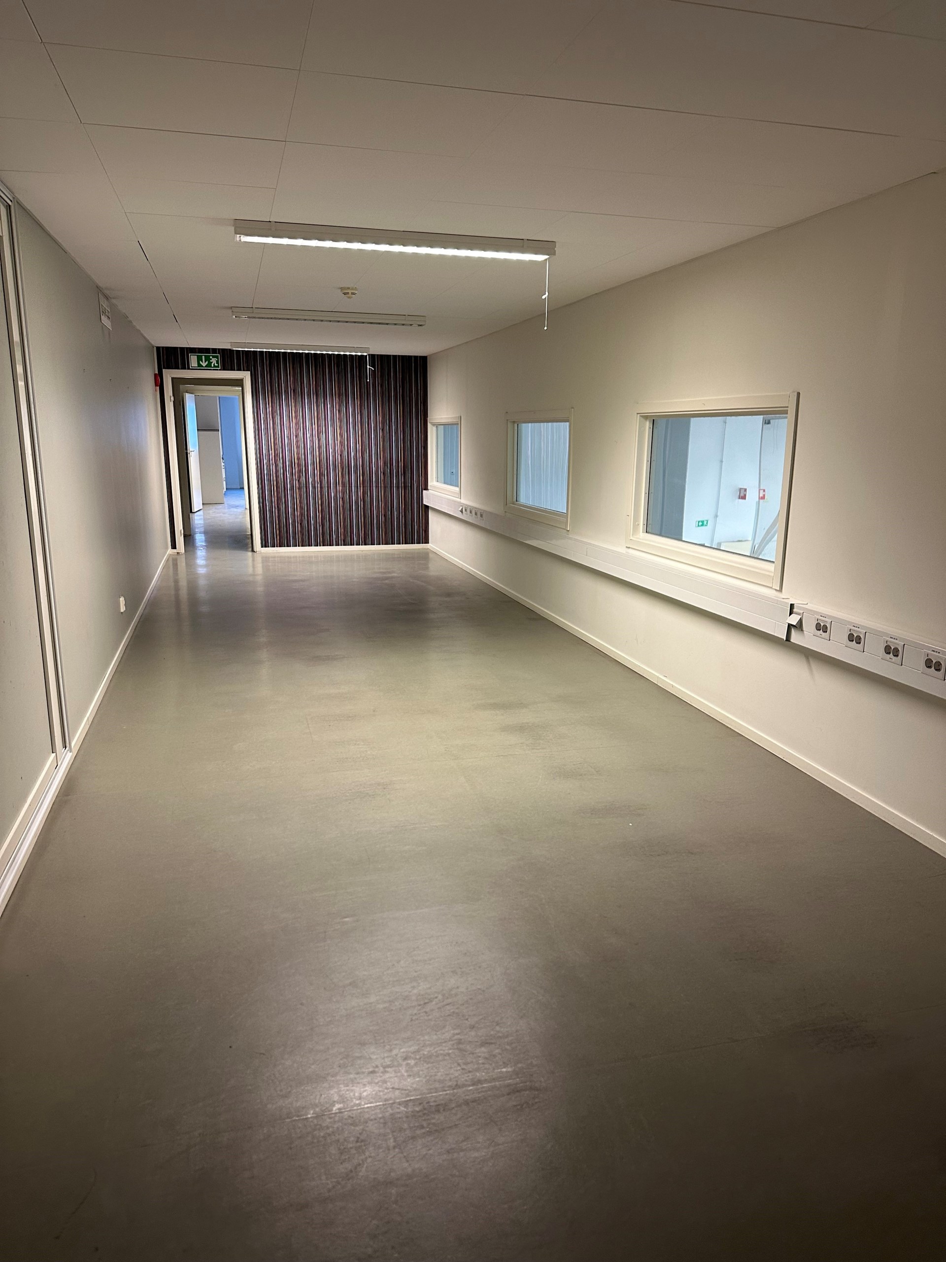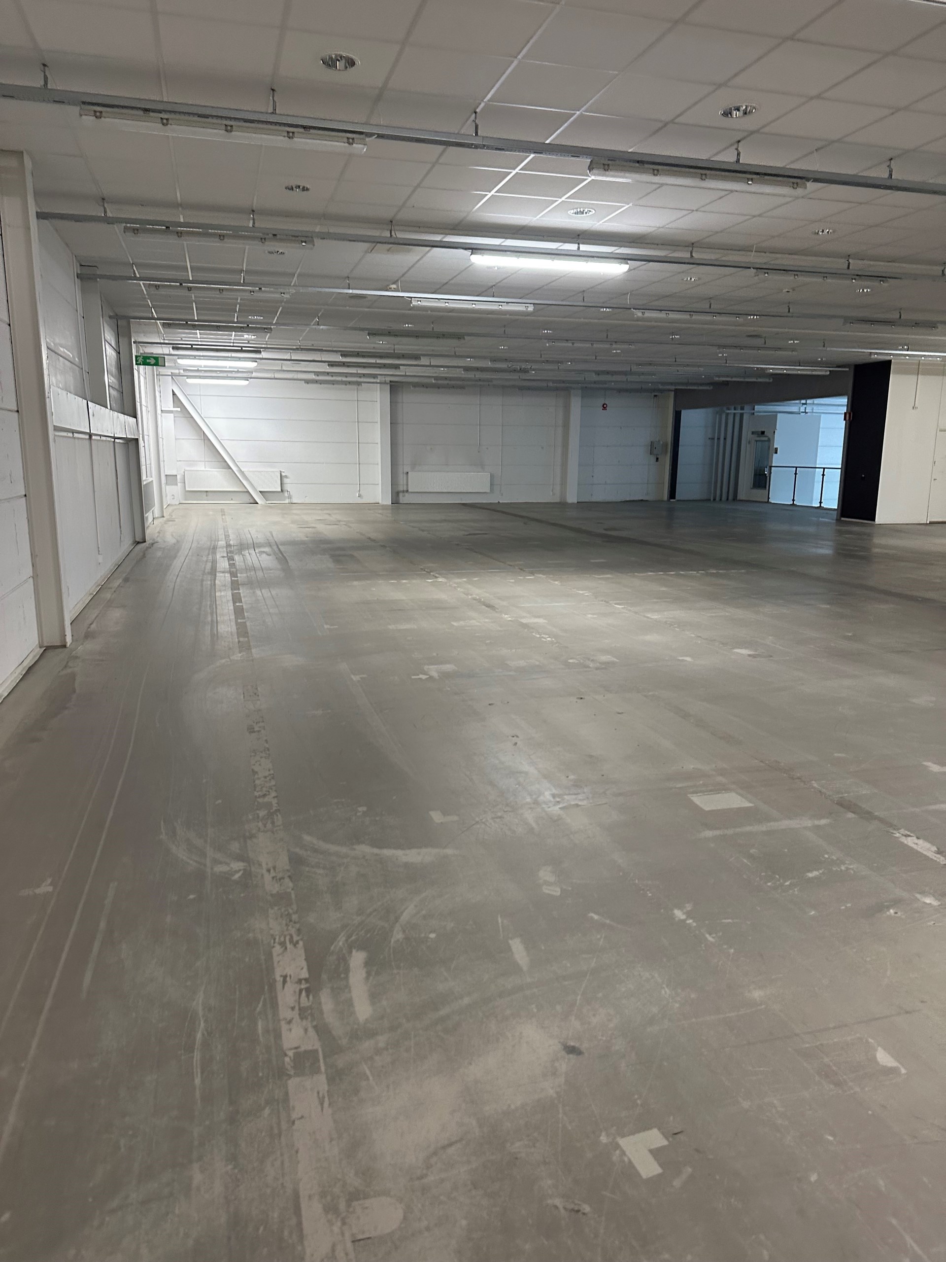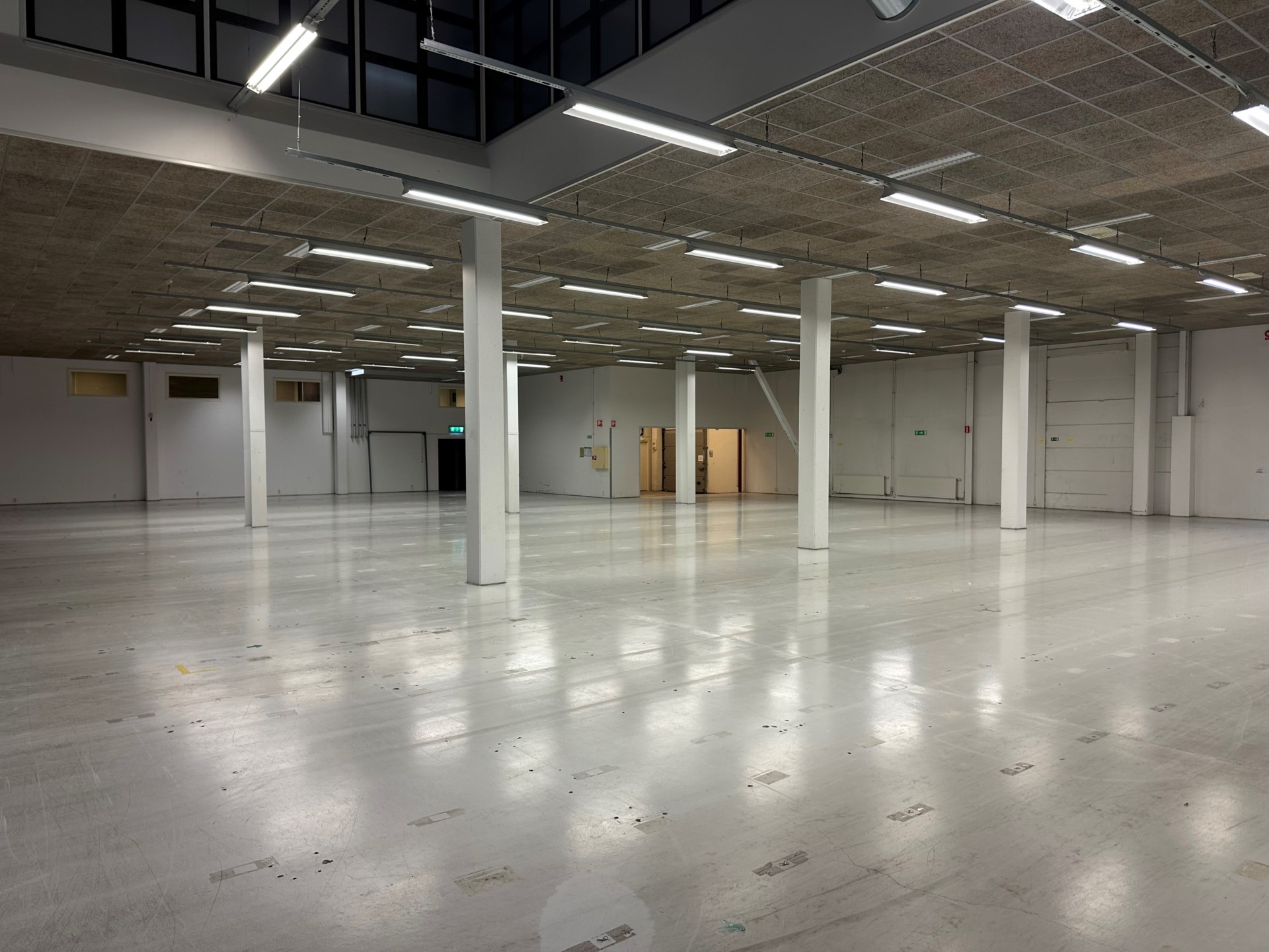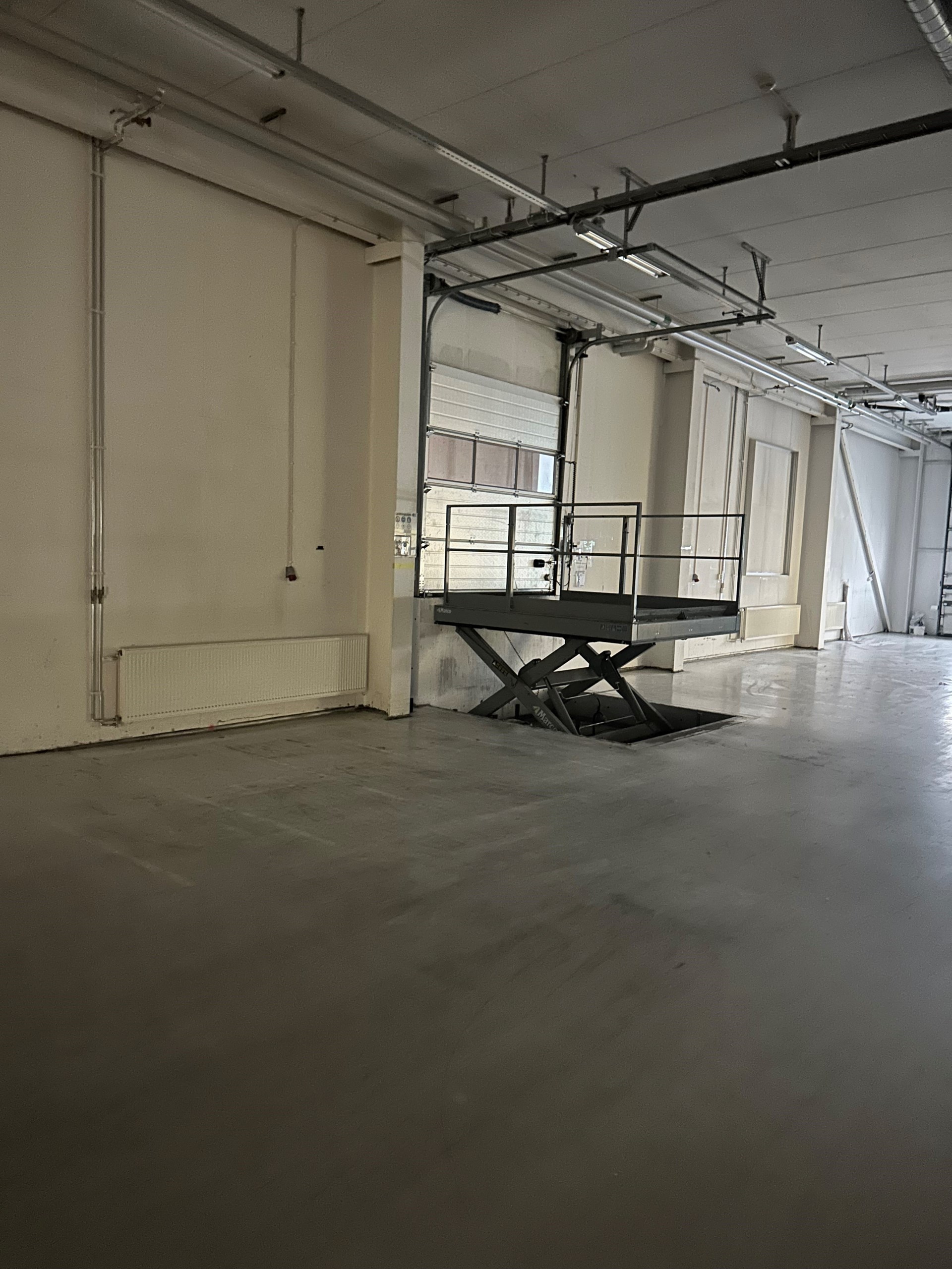 Lokalerna har en högtakhöjd om ca 10 meter. På baksidan finns lasthus för inlastning.