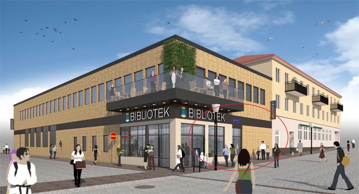 – Entré från Sundsgatan som delas med Biblioteket
